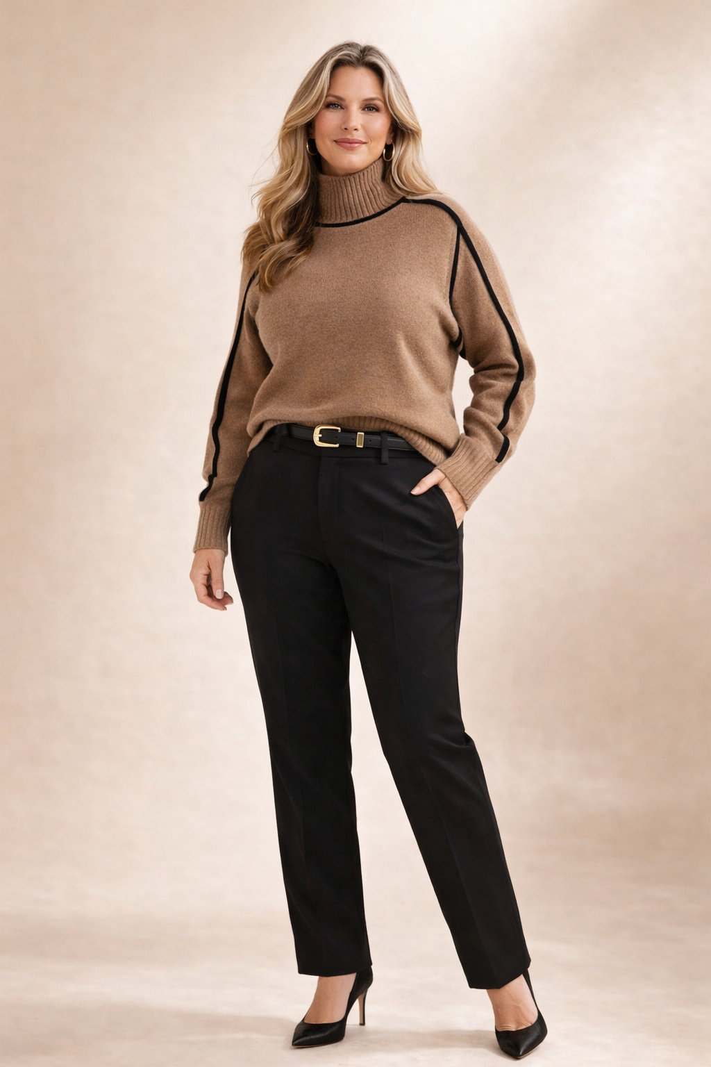 • Elegant Turtleneck – Adds a polished, refined touch while providing extra warmth